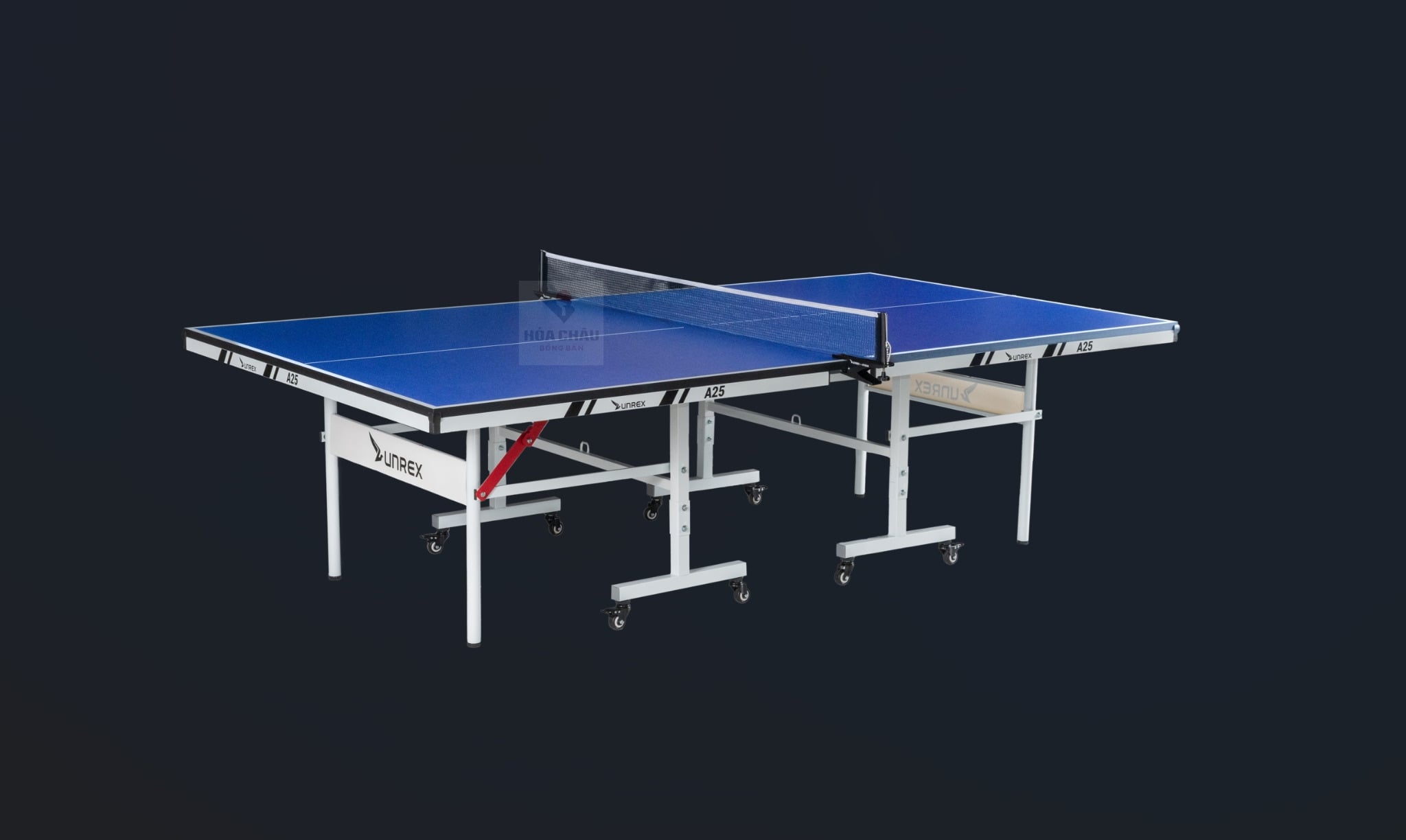 Mẫu bàn bóng bàn Unrex A25 được trang bị mặt MDF cao cấp dày 25mm cùng bo viền 50mm. Bộ chân chắc chắn , không có chi tiết nào thừa thãi. Bàn được trang bị bộ 4 cặp bánh xe có phanh giúp di chuyển cơ động và nhẹ nhàng.